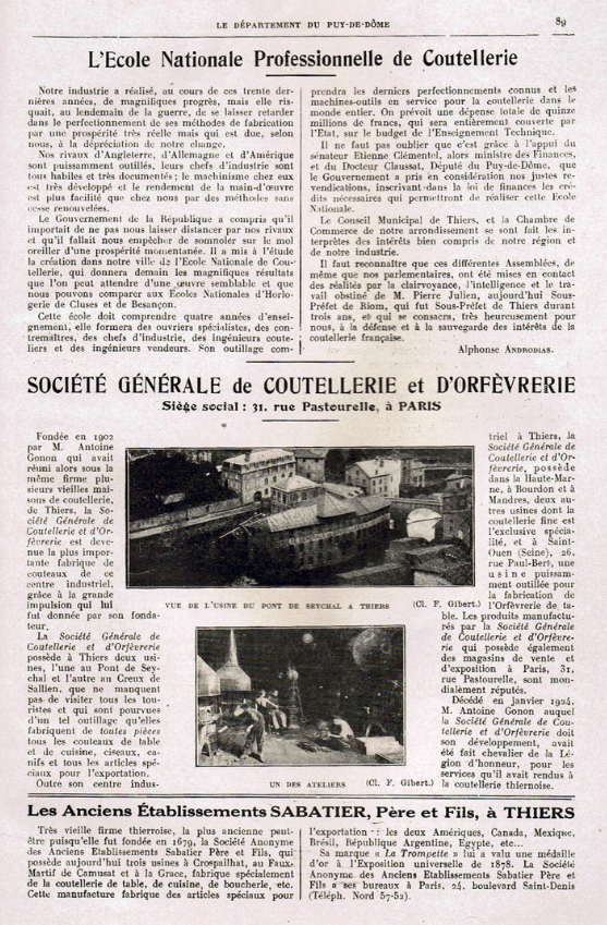 Даже если ТЬЕР вполне заслуживает титула французской столицы столовых приборов, а НОЖАН, ШАТЕЛЬРО (NOGENT, CHATELLERAUT) или ПАРИЖ — титула «Исторических флёронов», правильнее было бы говорить в терминах «промзона столовых приборов».