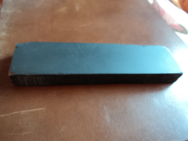 Re: Добыча с барахолкиДобыча скудновата-Кусок добротной кожи от подошв для яловых-хромовых сапог с номером 46 и камень для правки ,размером 135мм х32мм х13мм цвет черный. После не большей обработки на разной зернистости наждачной бумаги(финиш на 2000,затем на чистом стекле..)получил то что на фото. По тактильным ощущениям приятный на ощупь.... Нормальных бритв пока нет...