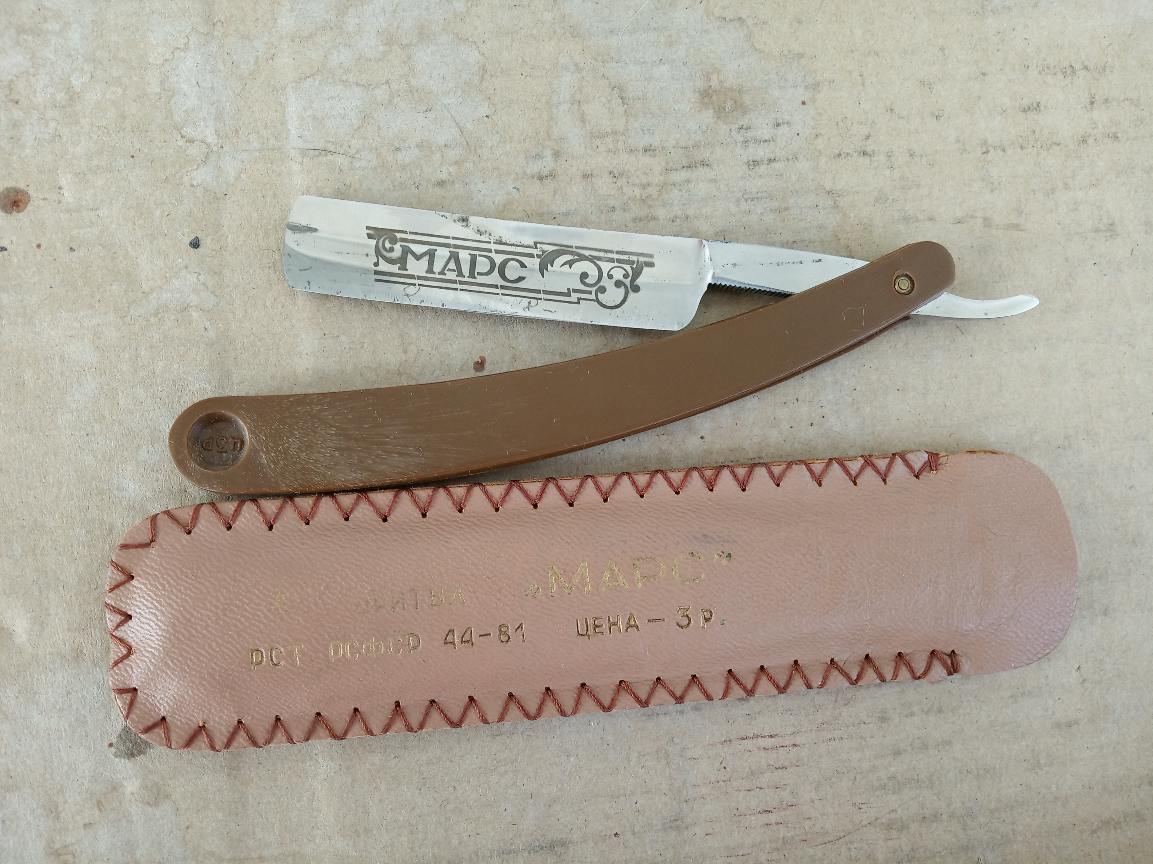 Добыча с барахолкиСегодня очень хорошо прогулялся. Ремень СТИЗ с "чудесной" ручкой, Белоречит хорошего размера(зачем, потом разберусь), Прибор для заточки лезвий безопасных бритв. И конечно, последняя марка СТИЗ Марс. Считаю, что состояние 4++, потому, что они даже новые всегда ржавые.