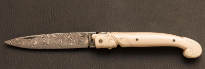 Цены у него заоблачные, молодец! По ведру и крышка! Но в наличии только 1 нож, вроде ему 64 года уже (но это неточно). 3 290,00 евро На этот раз Филипп Вуасьер предлагает нам Лагиоль с изображением Наполеона. Работа снова захватывает дух: кованая пружина с полной гравировкой, а также резная рукоятка из кости мамонта. до 4000 евро почти доходила цена! Некисло!