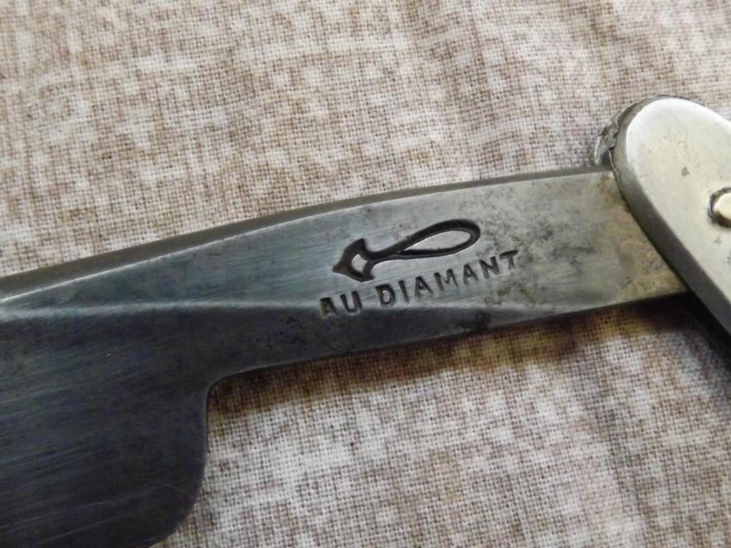 Почему отнес к Франции: 1. Diamant французское слово, употреблялось и на бритвах других стран, но редко. 2. Ручка из рога, клинышек из кости, судя по пинам ручка родная, да и сами пины на Францию указывают. 3. Общая несхожесть форм с Англией....с Германией, помимо формы и геометрии, еще и временные периоды разные, скорее всего. Есть ли у кого инфа по фирме?