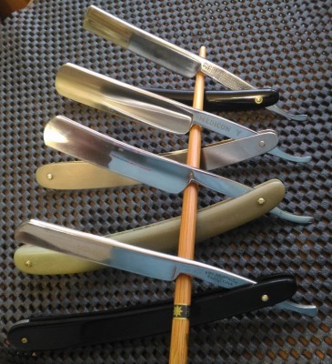 Ну и чтоб слова дополнить делом 1. Близнецы, все, кроме пинов осталось родное 2. Медицинская от нашего форумчанина, тут только заточка, ручка для меня не удобная, надо привыкать, но решил оставить. 3. СТИЗ с борохолки, родную ручку расколол при разборке, а дальше эта бритва меняла несколько одежек. 4. EDV.NEISTROM №52 от деда для умелых рук, чтоб опробовать приладил школярную линейку, да такая славная ручка получилась, легкая, тонкая, что решил оставить как есть. Есть еще те, что лежат на полке и ждут своей участи, брить меня или уйти с молотка, есть парочка, на которые не хватает времени привести в порядок, вообщем все как у людей