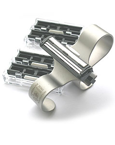 А видел я как-то фото бритвы с кассетой типа Gillette, но вместо ручки там был специальный захват на пальцы, т.е. на пальцы одел, кассетой в ладонь, и водишь (как гладишь) по голове бреясь --- специально для черепушки станок. Жаль пока фото не нашёл. Добавлено спустя 8 минут 12 секунд: А вот нашёл таки фото. Spoiler Show