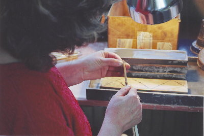 Бритва после мокрой обработки ставиться в мел, чтобы не ржавела. Затем окончательная доводка и проверка. Фото сделаны мной в 2003 году на фабрике DOVO.