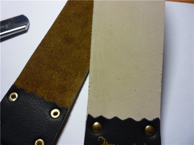И еще простите за глупый вопрос, у ремня две стороны, я правильно понял, сначало нужно править грубой, а потом мягкой? Re: Помогите новичкуБритву на заточку мастеру.