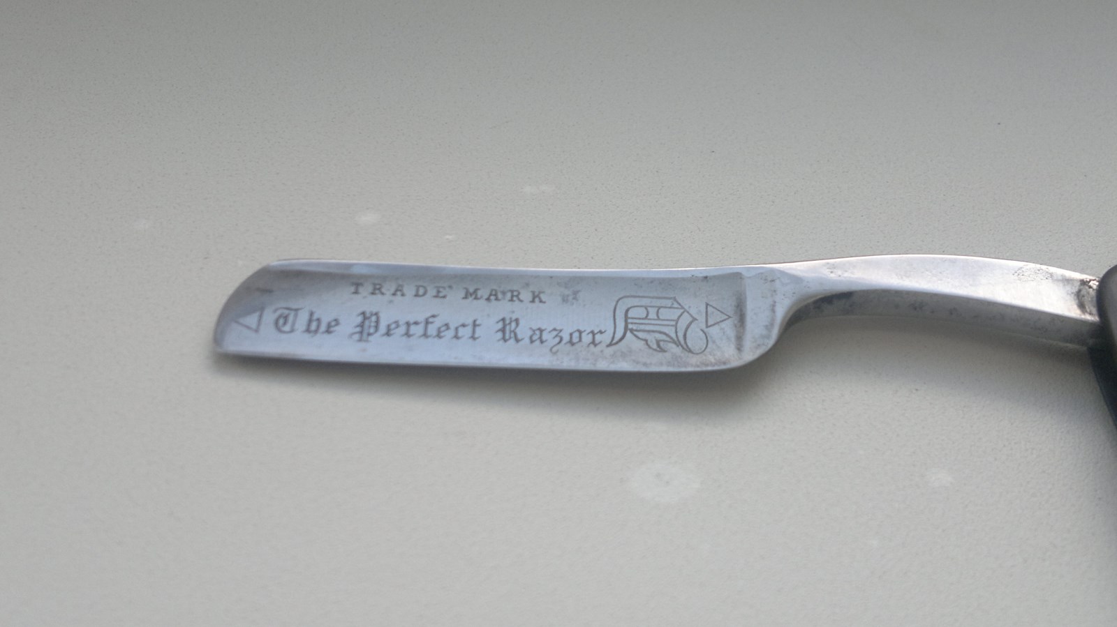 Итак - DE PEW Patent 1882 THE PERFECT RAZOR привлекла меня, прежде всего, формой "Monkey Tail" - обезьянний хвост. Взял. Ручка - рог. Форма и пропорции железа, действительно, изящные, удобный контроль, при ширине 5/8 длина режущей кромки всего 5,6 см. Да, внешне (на глаз, именно - пропорциями) и тактильно (по физике) производит очень приятное впечатление. Чуть почистил, поточил, побрился. Сразу оговорюсь: не стал насиловать, дабы не испортить. При минимуме усилий - результат на 4,8 по 5,5 балльной шкале