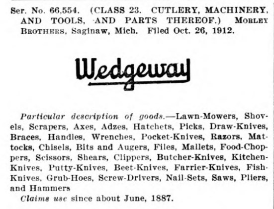 Торговые марки зарегистрированы в 1907 и 1913 годах Morley Brothers Saginaw Mich