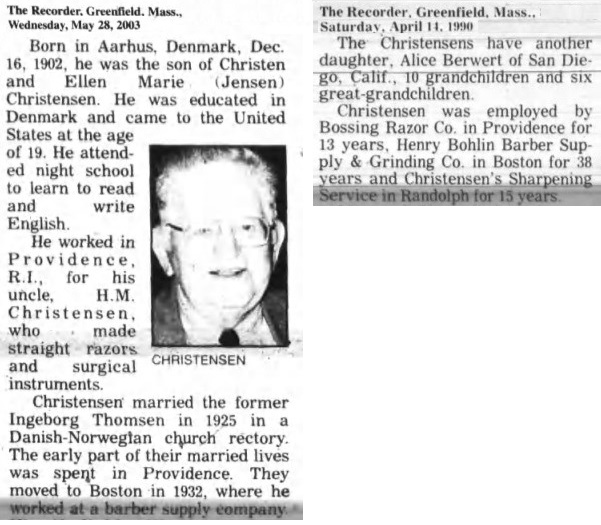 Генри М. Кристенсен приехал в США из Дании в конце 19 века. Уж не знаю где он научился профессии, но на новом месте начал производство бритв.