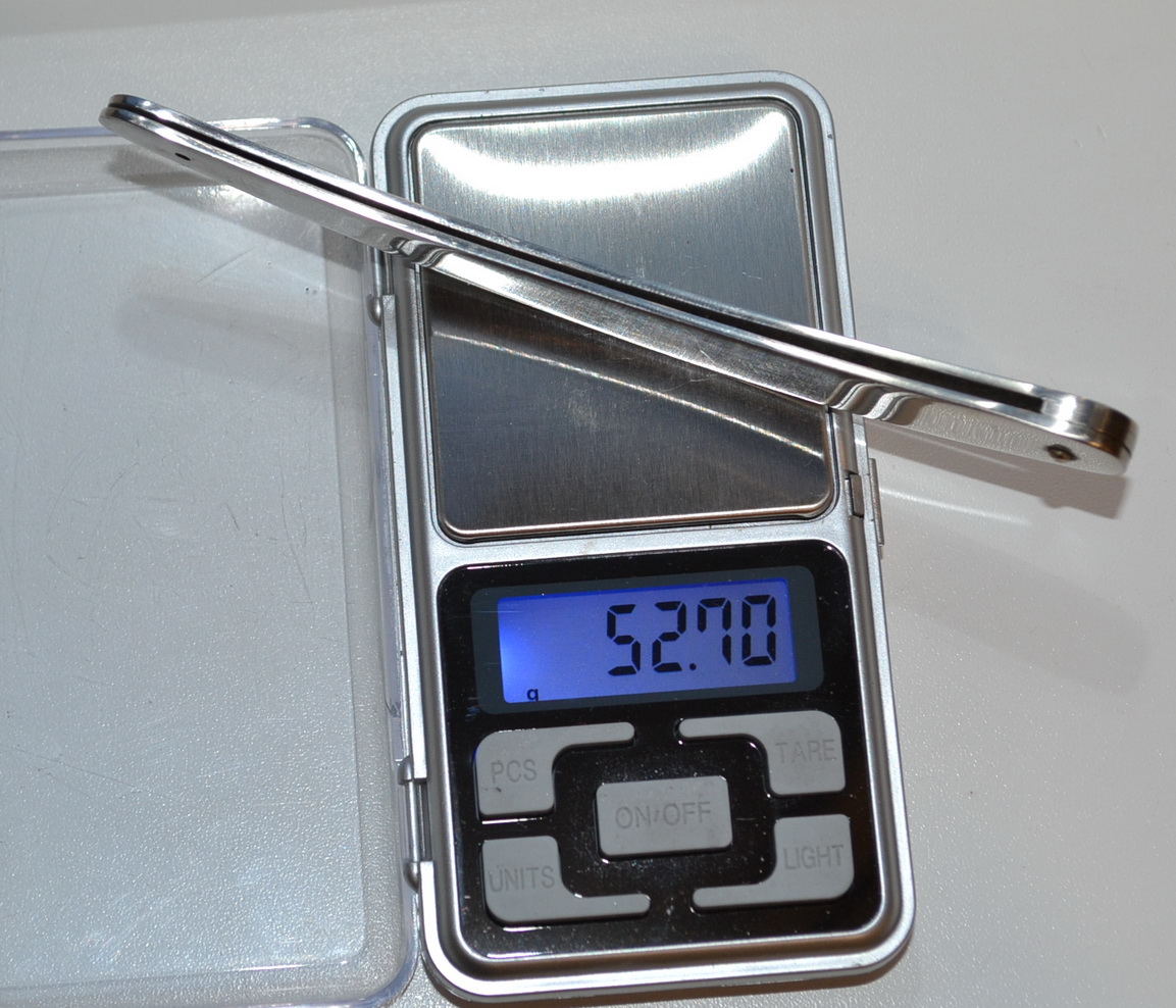 Ручка кифы в пределах 20 ти грамм. Для примера, полотно 6/8 Бенгалл в два раза больше. Добавлено спустя 35 минут 46 секунд: А ручка от медицинской Вачи весит еще больше.