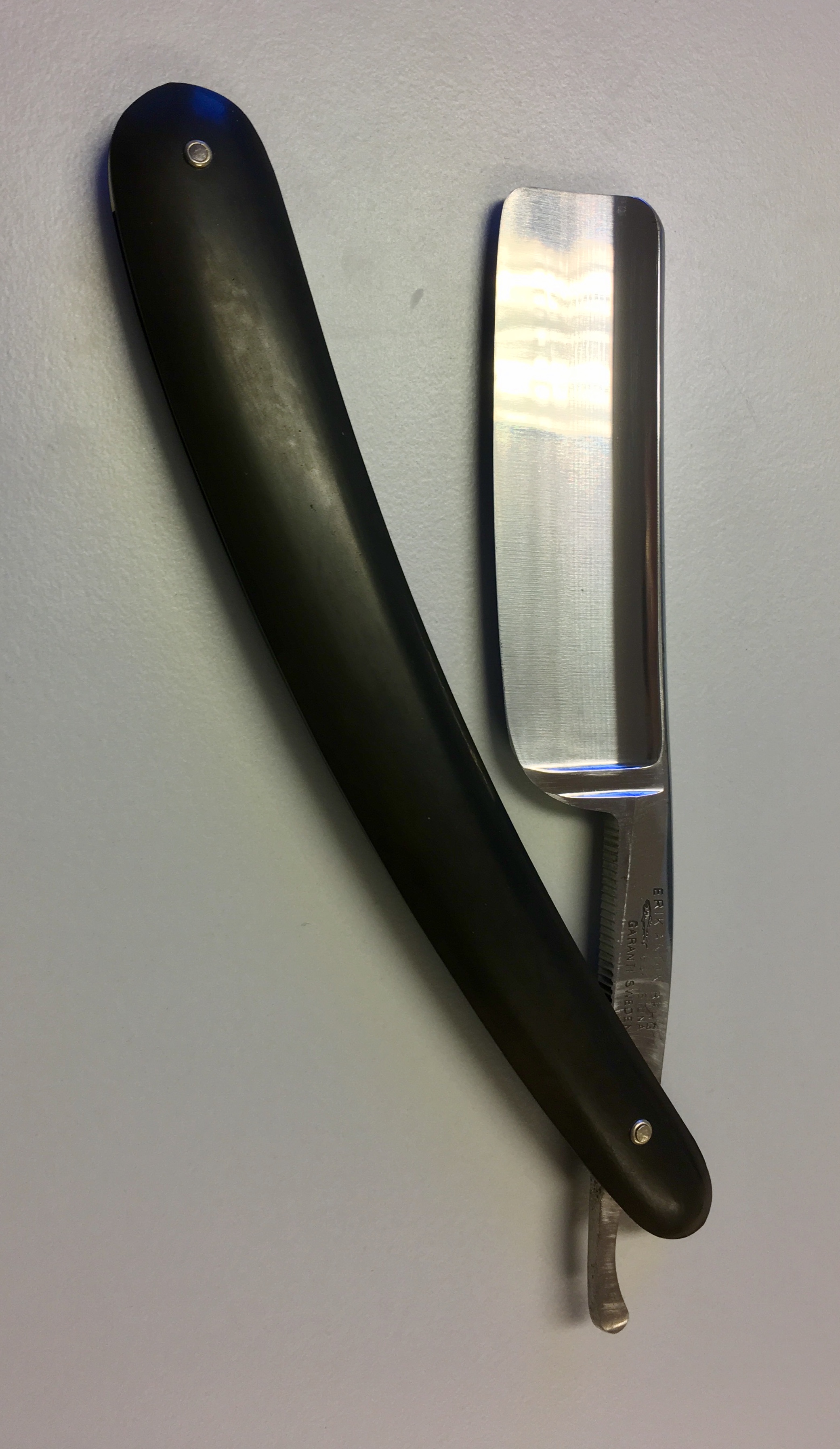 уралец: Что за производитель Erik Anton Berg? Предложили старую бритву от него,ручка ,похоже, неродная ,но само лезвие в очень хорошем состоянии, без всяких следов ржавчины, но и следов предпродажной подготовки нет, лезвие темное. На лезвии ряд (Штук восемь) золотых медалей и четкое клеймо рыбы,видимо акулы. Ширина лезвия ,скорее всего, 6(8 дюйма Может кто подсказать. что это зв бритвы, то в поиске не нашел?