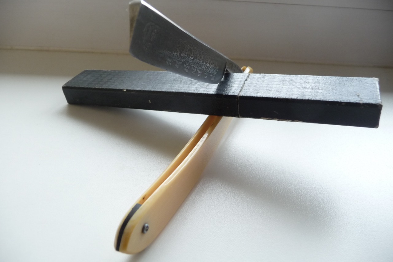 уралец: Что за производитель Erik Anton Berg? Предложили старую бритву от него,ручка ,похоже, неродная ,но само лезвие в очень хорошем состоянии, без всяких следов ржавчины, но и следов предпродажной подготовки нет, лезвие темное. На лезвии ряд (Штук восемь) золотых медалей и четкое клеймо рыбы,видимо акулы. Ширина лезвия ,скорее всего, 6(8 дюйма Может кто подсказать. что это зв бритвы, то в поиске не нашел?