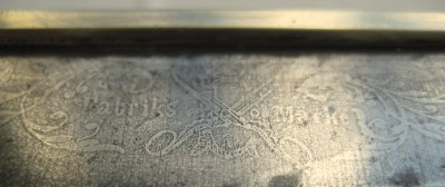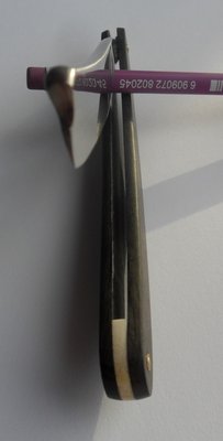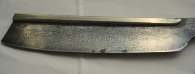Ручка-черное дерево(предположительно эбен) чем-то пропитано с фабрики, поразительно твердое. Размер полотна ближе к 5/8. Вогнутость-почти клин. Ручная ковка. Период изготовления предположительно 189х-1920