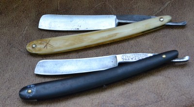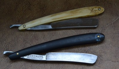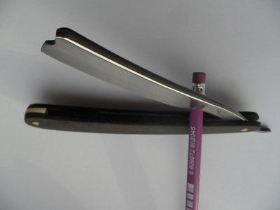 Действительно интересные бритвы. Тот что в кости имеет отличную геометрию, фаска ровненькая и тонкая. Re: C.W.DAHLGREN ESKILSTUNA SWEDEN 1878г.Два широких клина. Оба в дереве(эбен), оба 6/8. Клинышки - олово. Прекрасные экземпляры.