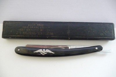 Re: J.A.HELLBERG ESKILSTUNA SWEDENСамое интересное, что у меня сейчас 2 одинаковые бритвы, вторая точно такая же, но с черной ручкой. Еще не делал, будет черная и белая