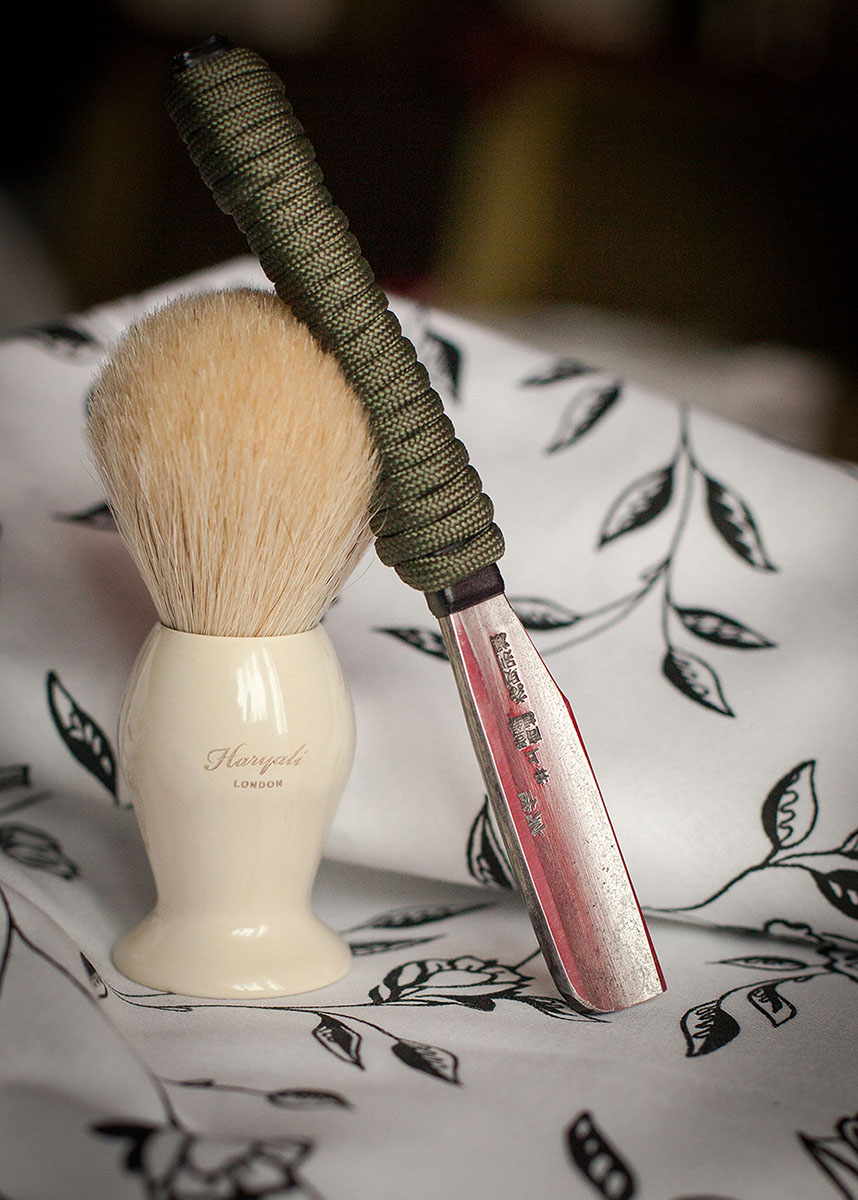 дано - очень жесткая щетина... даже т-образными или кассетами никак не получается протянуть обратным ходом, только по направлению роста волос... Иначе - раздражение гарантировано. даже глубокое распаривание не особо помогает... Исходя из этого и особенностей инструмента (малая длина режущей кромки) за *надцать попыток бриться выработался своеобразный стиль - если обычными опасными бритвами вполне можно пройтись широким движением, то камисори надо по чуть-чуть туда-обратно, кагбэ малыми порциями подрезая щетину (так и не осознал понятие "секущие движения", вероятно тут не оно, ибо подрезается волос прямо перпендикулярно, а не с протягом..) Дополнительно - надо отдельно привыкать к неподвижной рукояти, трудно вывернуть руку для бритья под ухом слева... Плюс - очень удобно брить верхнюю губу, да и щеки.. В общем - инструмент весьма своеобразный, бОльше - для любителей экзотики.. Кк то так... ЗЫ: Все - чисто ИМХО, прошу не бить канделябрами....