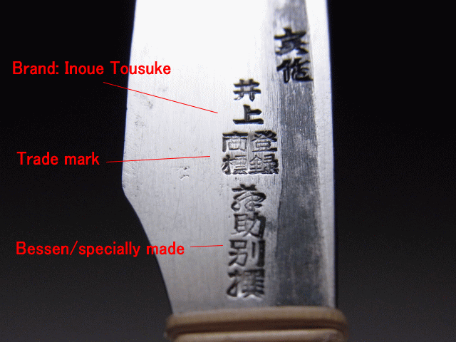 1.実作- Jissaku- "реальная работа" 2.井上- Inoue- "Иноуэ" (фамилия мастера) 井-"колодец", 上-" внизу, под, и т.д." ( на русский манер фамилия звучала бы почти "Подколодный" 3.登録商標- Tōroku shōhyō- "зарегистрированный товарный знак" . 4.藤助別撰- Tōsuke bessen- "Тооскэ "(Имя мастера) "специально изготовлено" Добавлено спустя 15 минут 45 секунд: Vitman, переименуй тему по имени производителя. Челябинские мужики настолько суровы, что правят бритву не на ремне, а на роже.