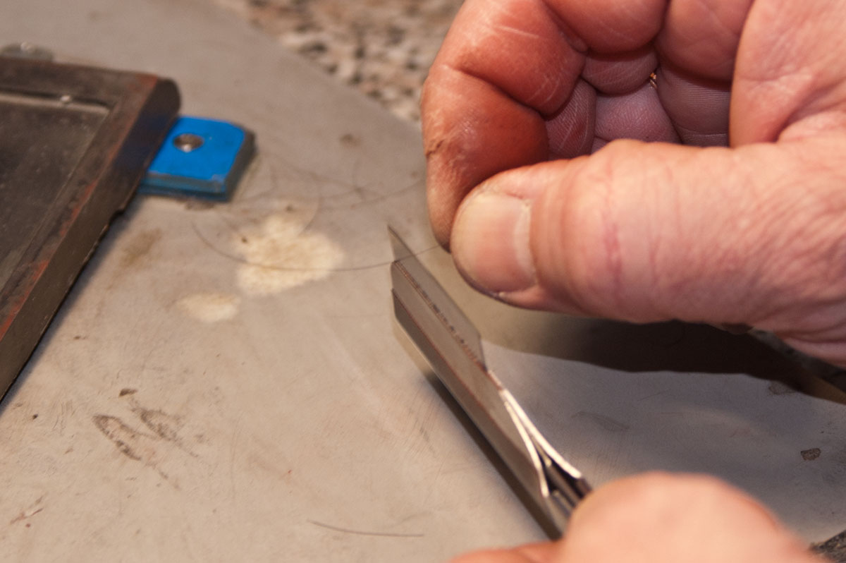 Намечаем и пробиваем отверстия (выпуклости) по лезвия VALET.