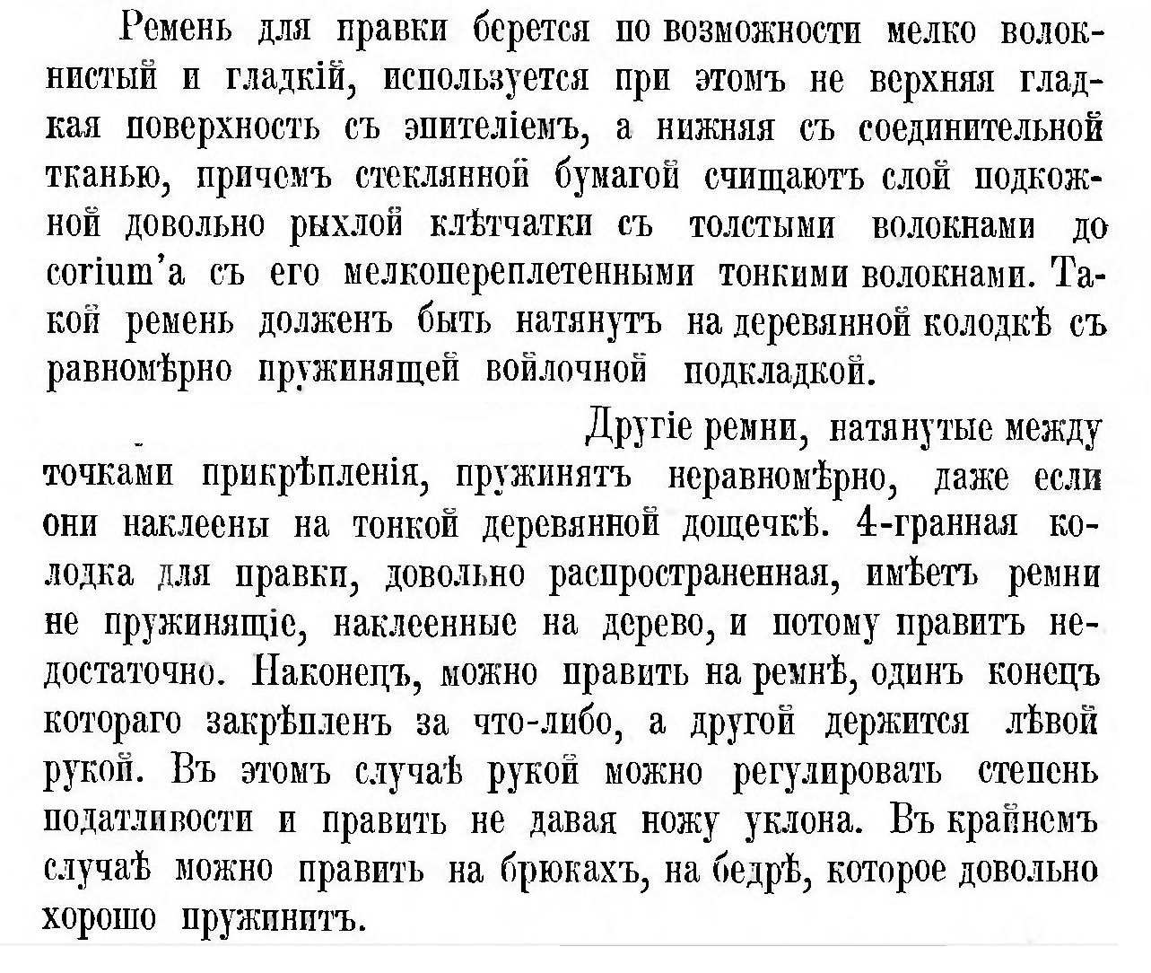 Для адептов рускаго языка: ремень для правки бритв называется ПАСОК. С ударением на буку "О" - пасОк. Слово встречается в словаре "церковно-славянского и русского языка" 1867 года в "настольном словаре для справок, под ред. В. Зотова и Ф. Толля" 1864 года. А вот в первом издании словаря Даля (1865 года) этого слова уже нет, видимо Владимир Иванович решил, что это слово уже вышло из употребления. 1911 год "Теория и практика точки инструмента" Л. В. Соболев: ремень на деревянной дощечке называется колодкой для правки. (Кстати, рекомендует править на замше, а не гладкой коже.) СССР не нашел ни одного подвесного ремня промышленного производства. ( за исключением армейских, 1939г. выпуска) Spoiler Show Был еще комбинированный натяжной ремень. То, о чем и спор - с одной стороны кожаный ремень, с другой стороны стропа. . . по совокупности: если радеть за историческую терминологию, то правильно будет -