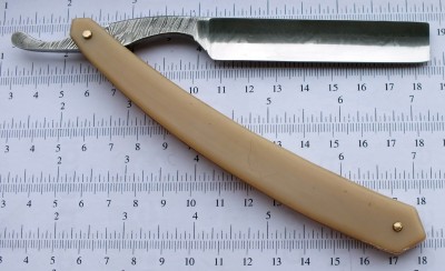 Прислал мне один хороший человек, который "наигрался" дамаском и понял, что потребительские качества этого изделия чуть выше чем сувенира. Я отредактировал клинок, провел регринд, поставил оправу, заточил и побрился. Повторять бритьё этим не хочу. Потому продаю по цене затраченной работы 32 года активно мусолю харю клинковой бритвой