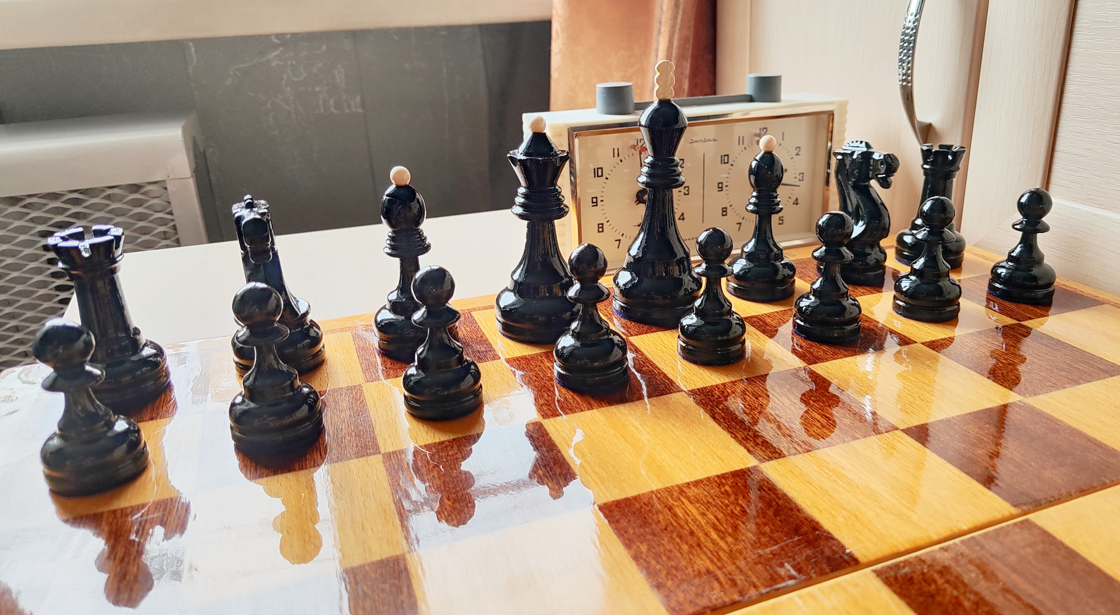 Наше прочее хоббиБольшие Мордовские или может ранние Семеновские, 60е годы. Доска 40х40, всё полностью из дерева. Из работ полное восстановление ЛКП фигур, восстановление сломанного навершия чёрного короля, покрытие доски, подложки мебельный кожзам. Были ещё малые Мордовские - уменьшенная версия этих шахмат, позже покажу их