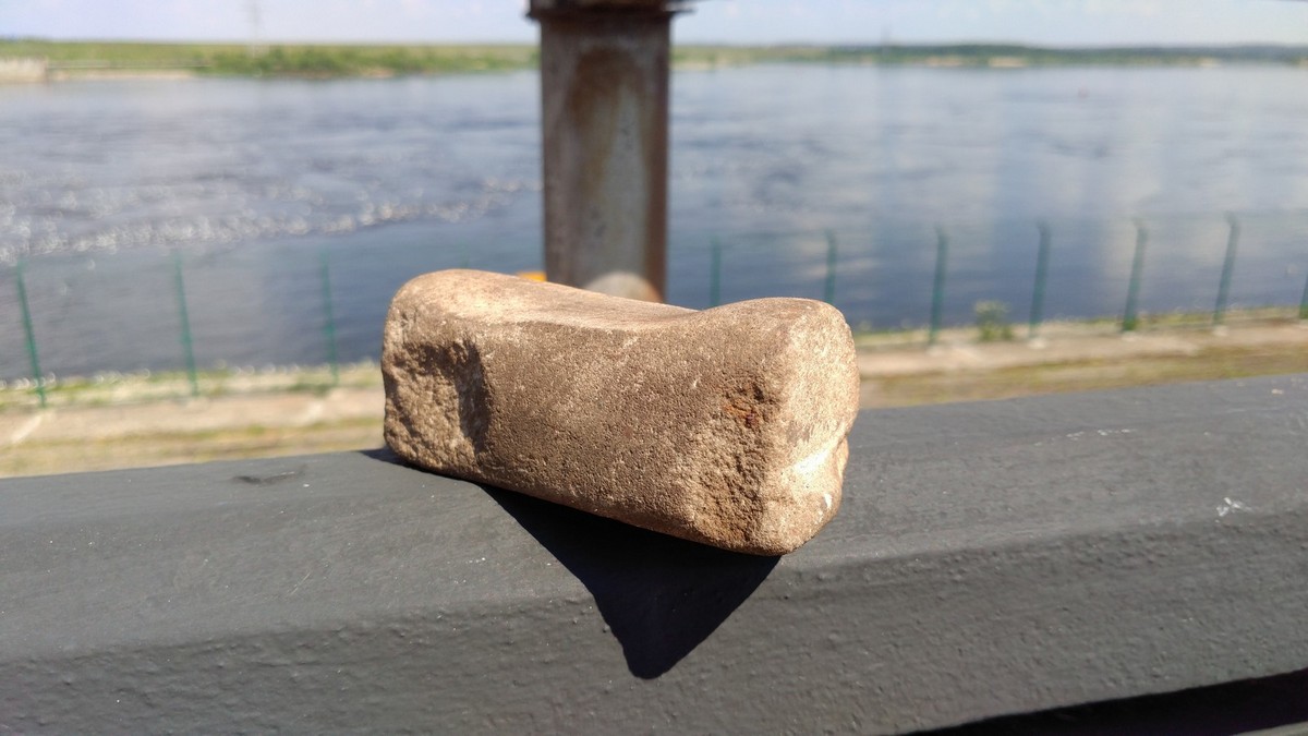 При разборке завалов в деревне нашел булыжник, об который, вроде бы, кто-то что-то активно точил. Немного потер найденный булыжник об абразив, увидел что находка имеет бело-серый цвет с множественными вкраплениями оранжевых точек. Структура камня мелкозернистая, при попытке поточить китайский нож увидел риски, похожие на риски от камней в 100 гр. При заточке поверхность камня очень быстро стала грязно-серой, металл с китайца был хорошо заметно погрызен. Может быть, кто-нибудь опознает, что это я такое нашел? Стоит ли заниматься приведением в цивильный вид? Или, может, это хороший гнет на огурчики? Re: Помогите определить каменьЭто брат близнец моего