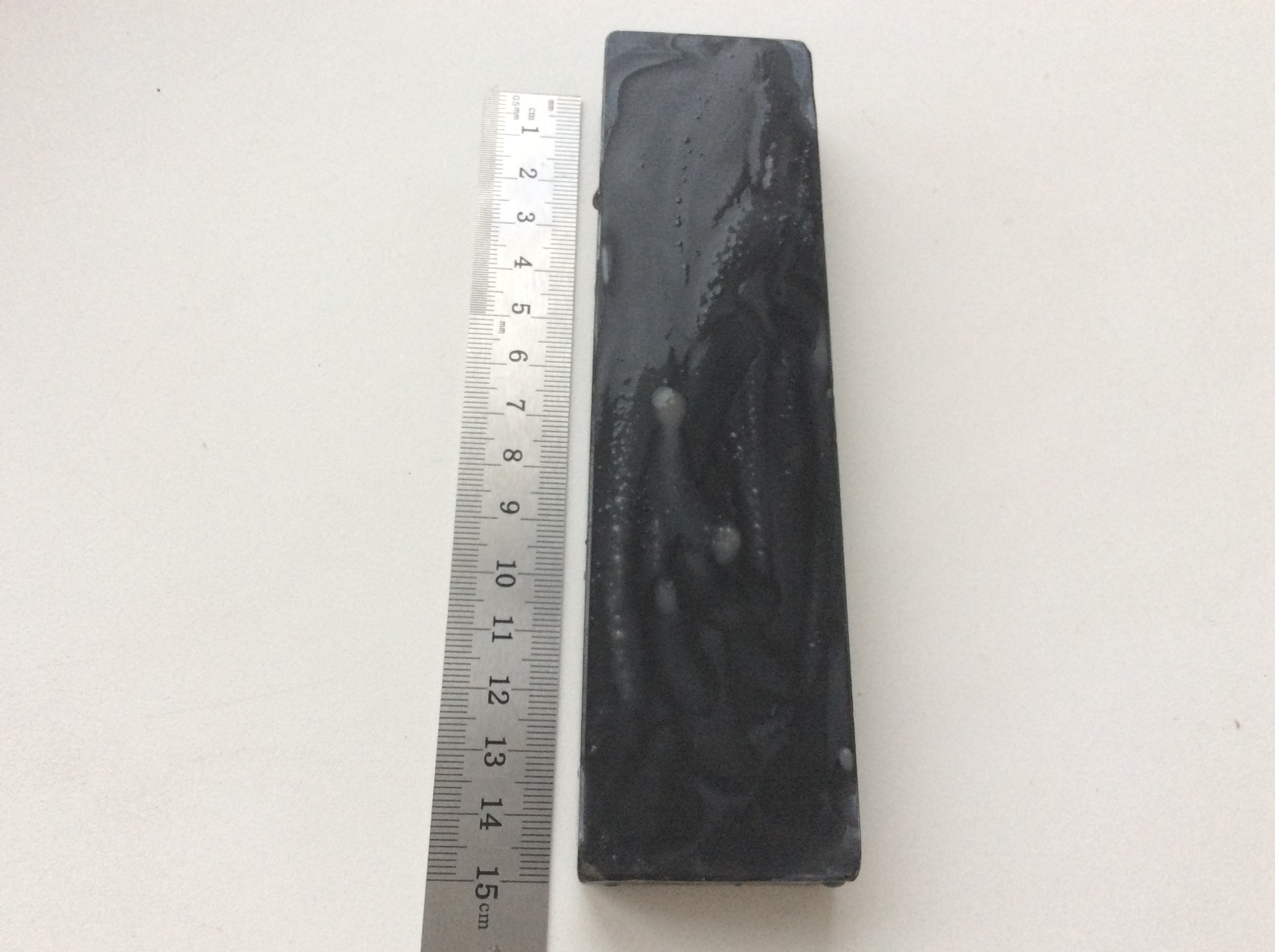 Помогите определить каменьПриветствую форумчане. Лежит у меня тут лет 15 невостребованный камень. Забрал его у тестя, которому он достался от деда. Камень тяжёлый, очень мягкий, но вместе с тем и очень плотный. Подскажите, это советский или ещё какой? Суспензию наводил Цусимой. Влажная суспензия серая, сухая белая. Сам камень цвет при намокании особо не меняет, постоянно чёрно-смоляного цвета. Толщина после выравнивания 20 мм., а была где-то 25 мм.
