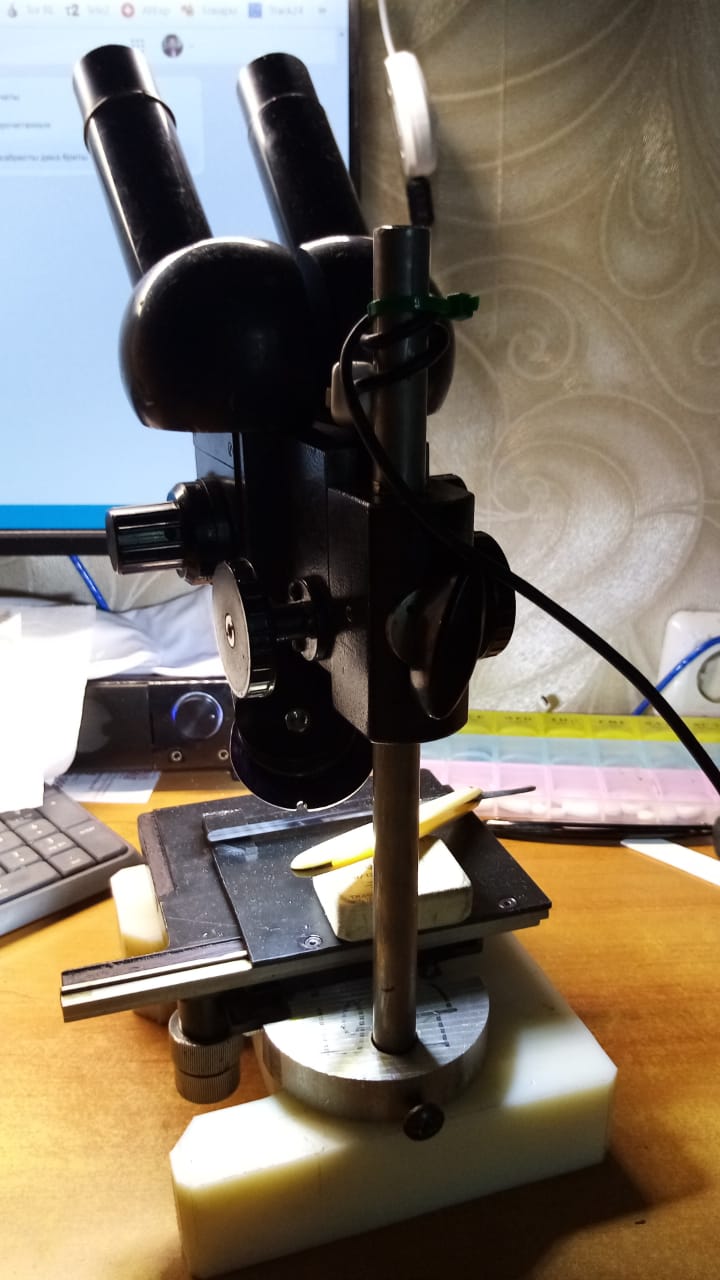 Дело в том, что штатный набор объективов/окуляров дает увеличение х280 - х1600, что для бритвенных нужд лишковато. Поэтому штатный набор не использую. Достал редкий ныне школьный объектив х8 из СССР. Сейчас такие и не найти. Их просто не выпускают. То есть использую преднамеренно загрубленный дорогой прибор с неродным планарным объективом от простейшего микроскопа. Единственно, что нравится в БИОЛАМ, это очень продуманный предметный столик с препаратоводителем, позволяющий протянуть в поле зрения всё РК без перекладывания клинка. Но всё же решил разорится на нормальный прибор под свои нужды. Как говорится и на ёлку влезть и промежность цела. Приобрел биологический стереомикроскоп МБС-1 и отдельно столик от БИОЛАМ. Столик пришлось кастрировать по высоте на 32 мм. Иначе общая высота микроскопа была бы неприемлимой для комфортной работы сидя за усредненным рабочим столом высотой 70 см. Вот теперь моя душа довольна. И ёлка и промежность и крестик и трусы. Никаких противоречий. Стерео в огромном диапазоне х3,6 - х112 и плавная протяжка всей РК в поле зрения. Старый БИОЛАМ наверное буду продавать. Теперь он без нужды. 32 года активно мусолю харю клинковой бритвой