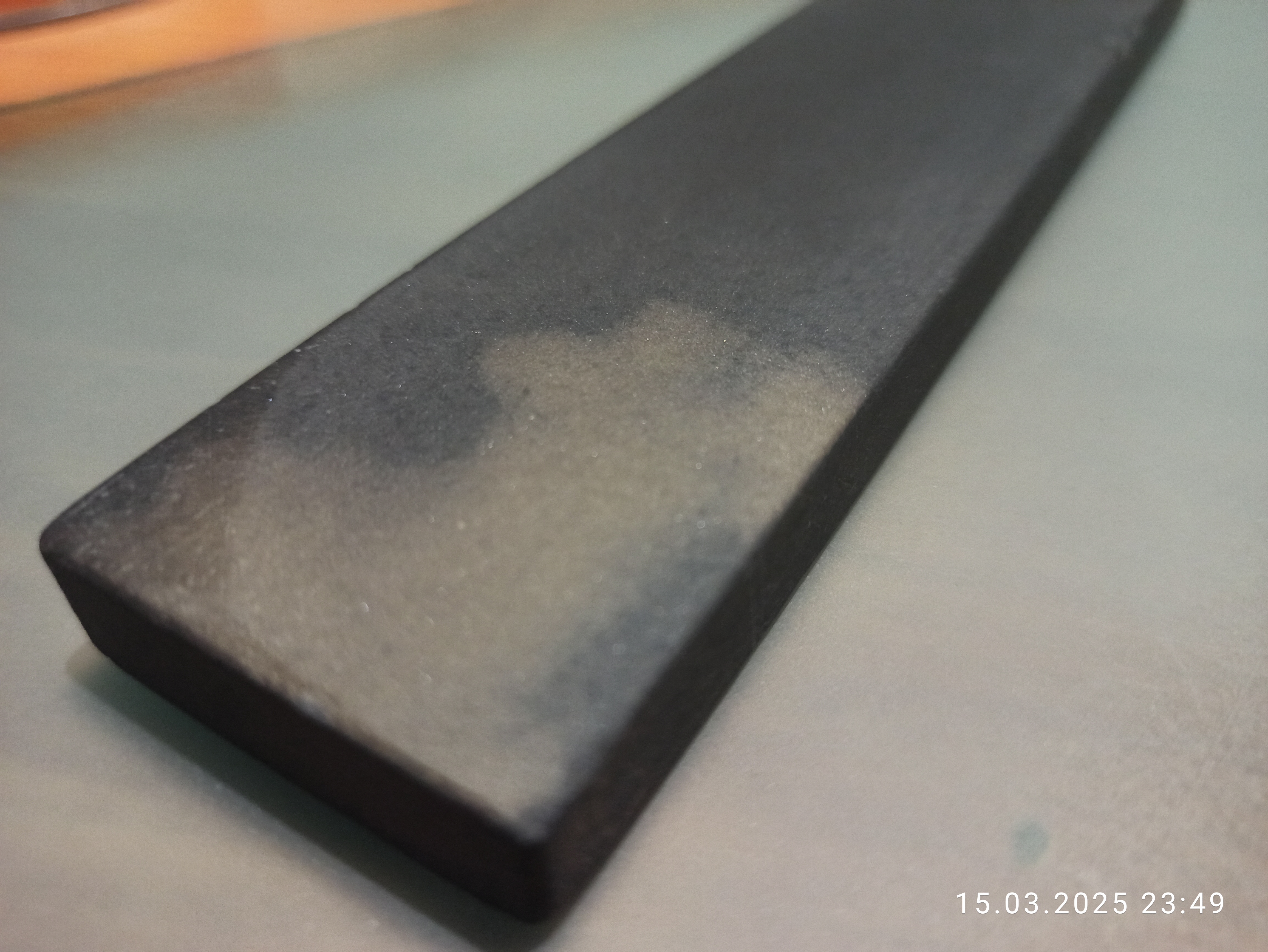 Здравствуйте. Помогите с камнем. 175×40×12.Сильно пахнет известью или шифером. Суспензия темная. Серо-коричневая