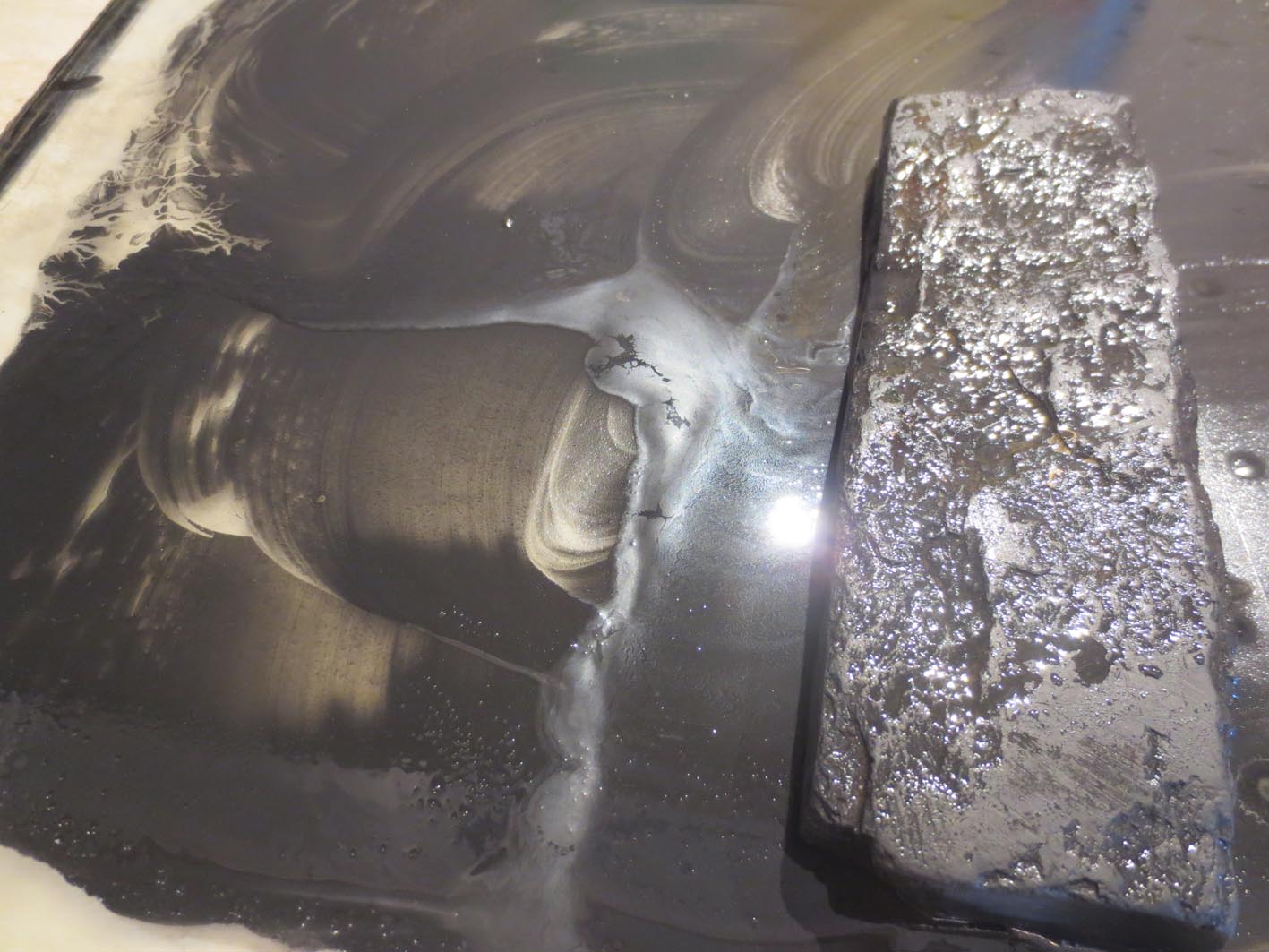 Выравнял на стекле с КК - вот такая суспензия, равняется быстро, впечатление, что в воде взвесь черного цвета..