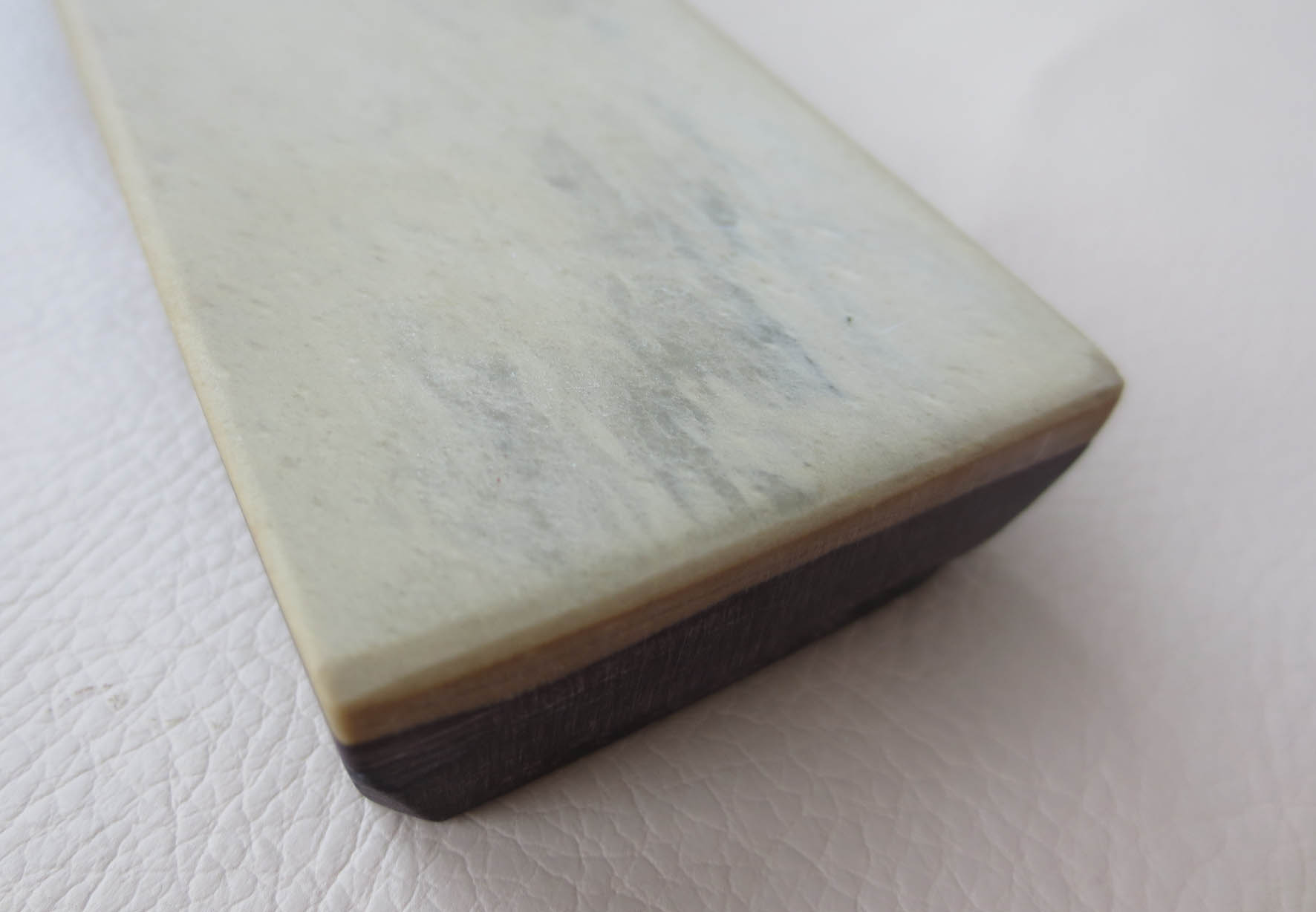 Re: Помогите определить каменьСудя по голубой полосе параллельно линии сращивания с BBW это La Petite Blanche. Может быть мягковат, приноровиться надо. Может выбиваться суспензия от трения бритвы о камень при заточке, если так для финиша надо работать под проточной водой. У меня свой как раз la dressant похоже, так вот приклеенный к нему BBW как раз работает тоньше самогО желтого бельгийца.