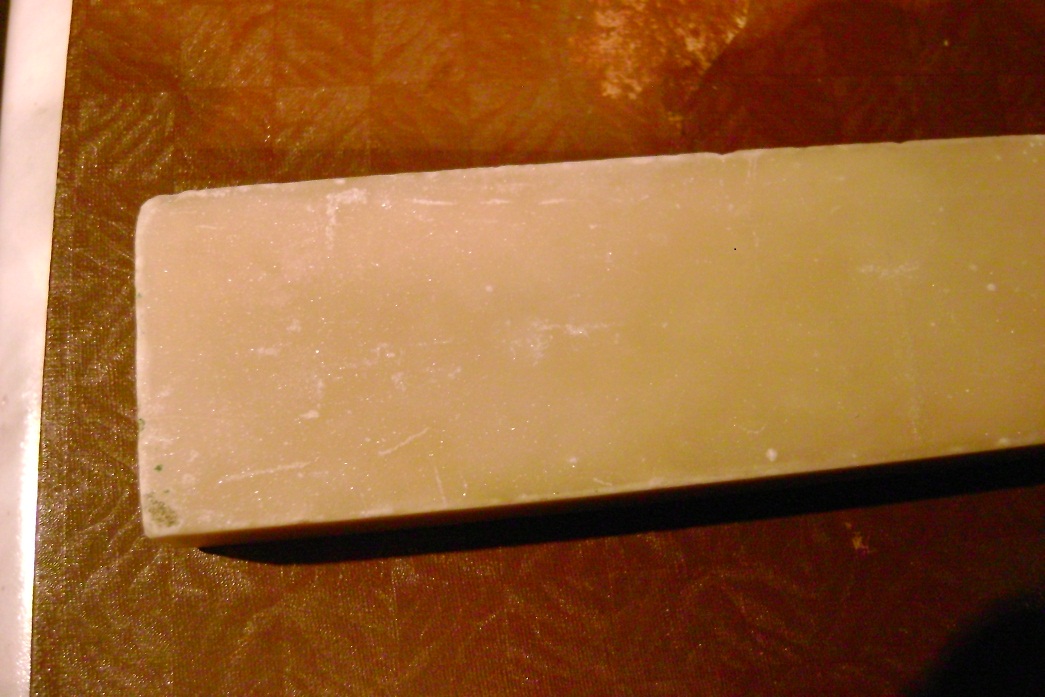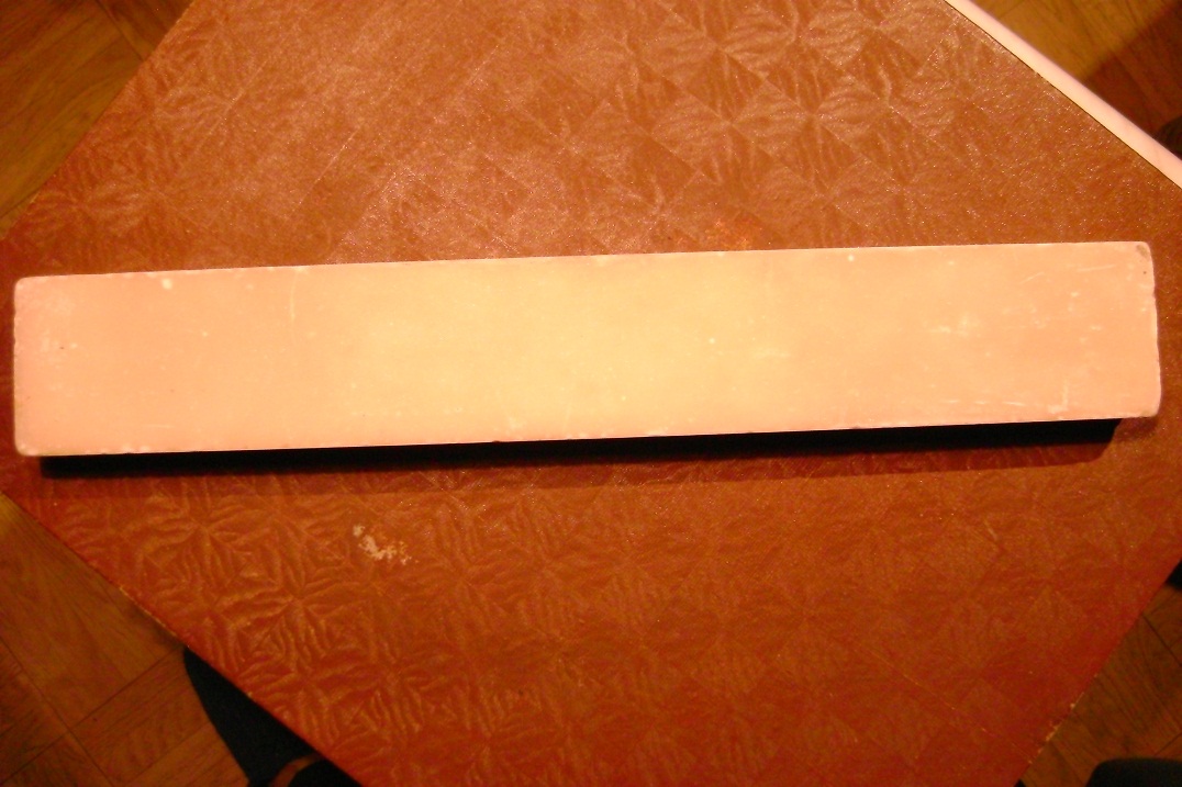 Re: Помогите определить каменьЗдравствуйте. Попал мне интересный камень. Давно один дедок с барахолки обещал притаранить арканзасы. Какие будут камни я предвидел. Барахолку посещаю не часто, он тоже, в общем через год мы встретились. Принёс он три крупных бруска белоречита и ещё одну глыбу. Я её брать не хотел, показалась грязным куском мрамора, и размеры половина бивня мамонта 300*47*24мм. Принёс домой, отмыл, цвет медовый. Немного мягче белоречита, абразивность неплохая( прим 8000гр), болит плечо, поэтому не испытывал.