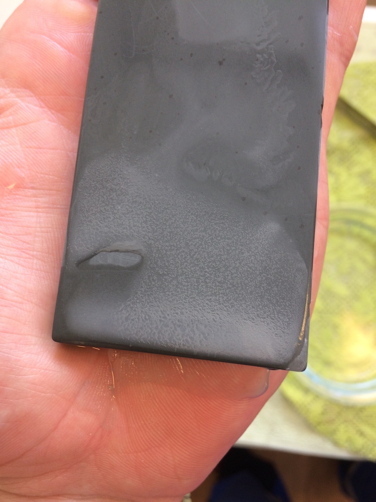 Если без нагурки, то вода скатывается как на кремне, однако после работы камень от нее темнеет и становится все таки мокрый. самый приемлемый результат - на воде. Доводка получилась только когда взял кусок сланца в качестве нагурки его испльзовал, бритва строгает волос, бритье комфортнее чем поле тюрингийца. Предположительно думаю это накайама асаги, видел на ебее немного другого цвета, но с такими же "чешуйками" которые отблёскиваются. Покупал его на ебее в италии, продавец его позиционировал как камень для заточки бритв, был на нем бело-желтый налет с запахом метала. После доводки выглядит примерно так. Какие есть соображения? Добавлено спустя 3 минуты 17 секунд: Еше фото Олег Бритва писал: