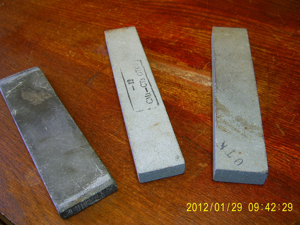 Давно читаю статьи Вашего форума, но только сегодня зарегистрировался. Потихоньку перехожу на опасную бритву, и вот хочу прикупить камни. Посмотрите, пожалуйста, на фото и скажите Ваше мнение. И по возможности во сколько Вы их можете оценить. Камни советские. Заранее Спасибо