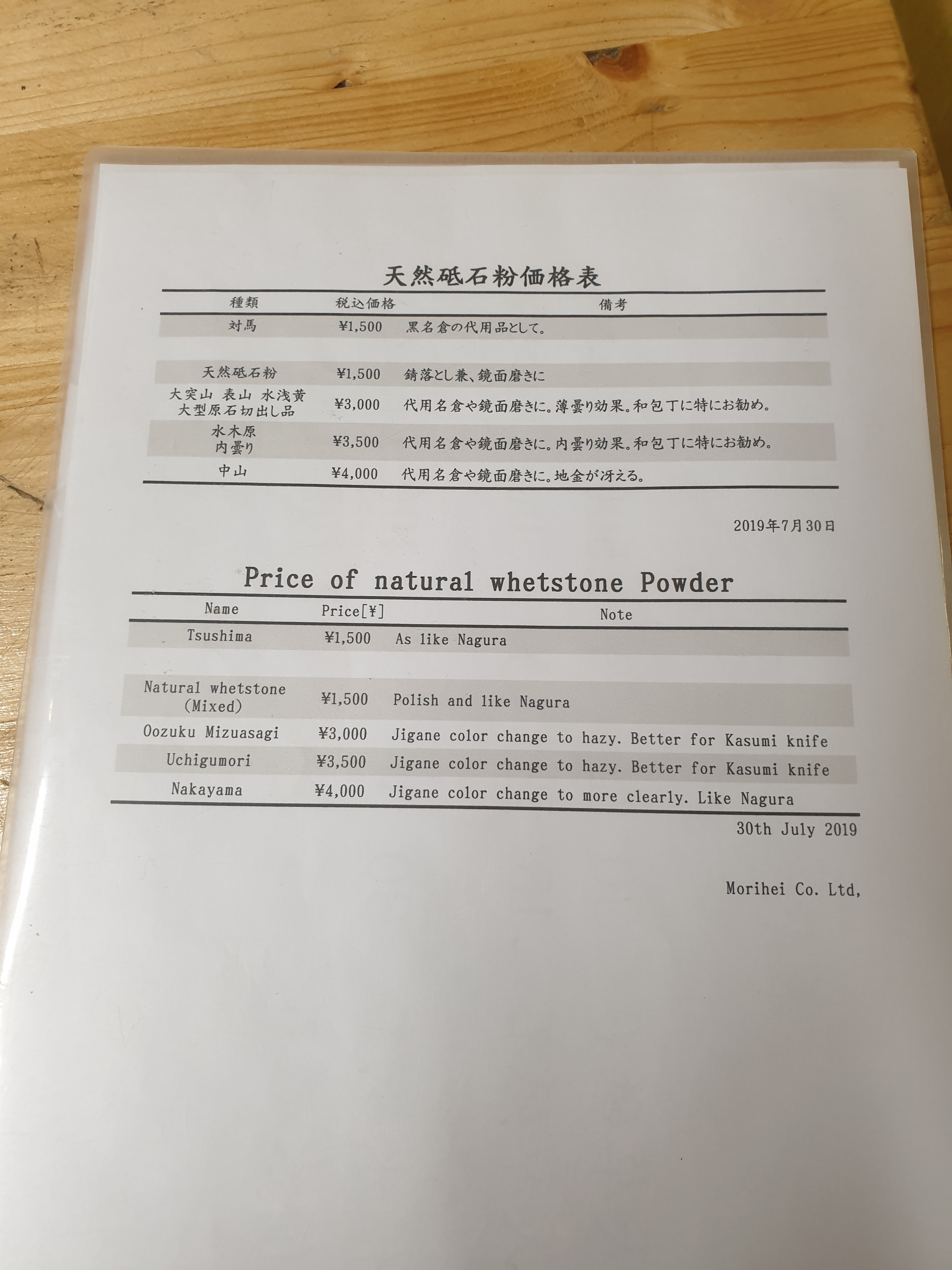 Опыт покупки у Morihei в ТокиоНовая серия про этот магазин - только вернулся из Японии, в этот раз побывал в магазине лично. Цель посещения была - купить их синтетик (под брендом Morihei) гритностью 12К. Уже на месте выяснилось, что цена на них поднялась практически в 1,5 раза по сравнению с позапрошлым годом, когда они запустили их в производство))) Но уж очень интересно попробовать синтетик локального японского бренда, тем более, что вне Японии он кажется не представлен. Привез, тесты еще впереди.