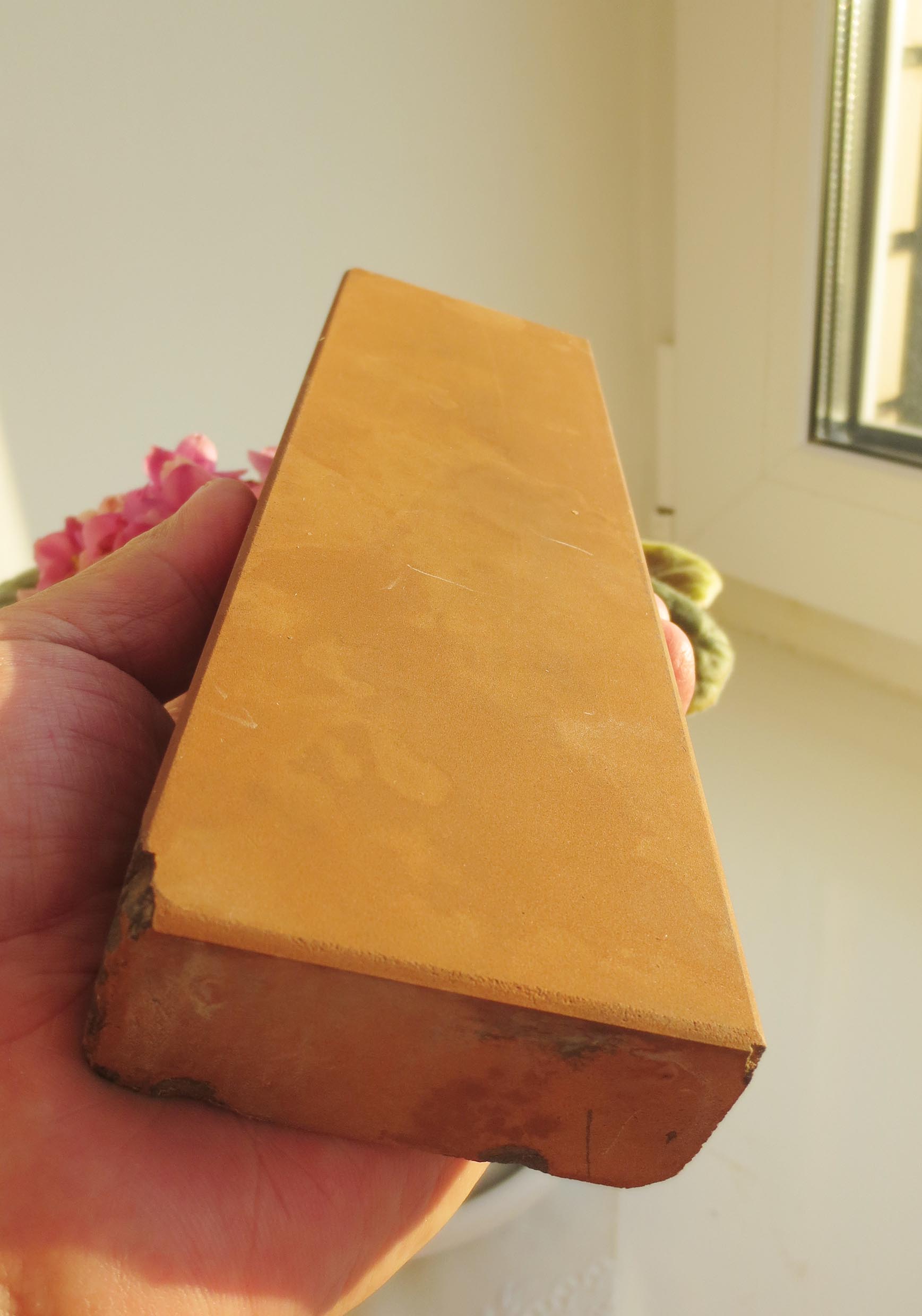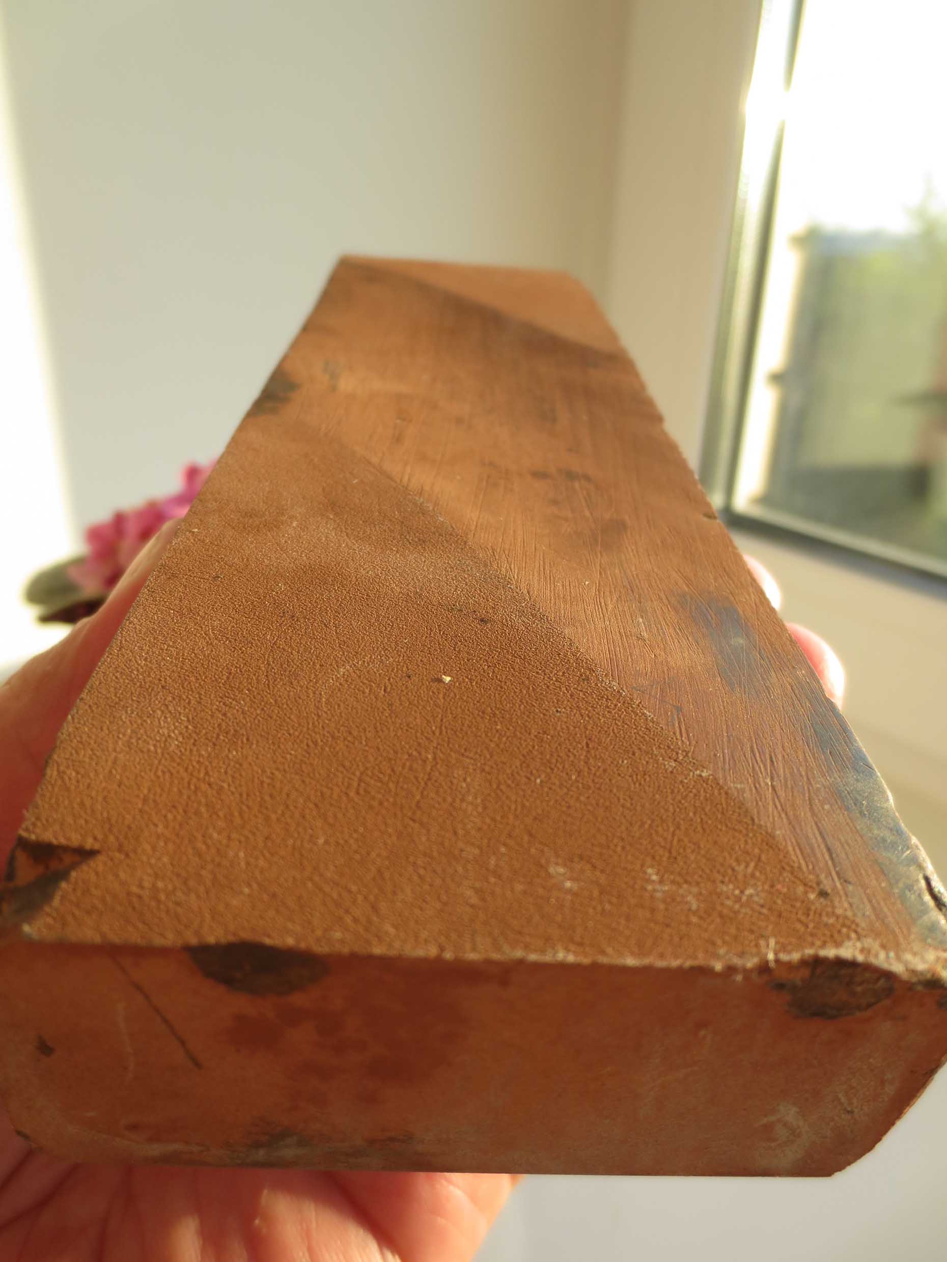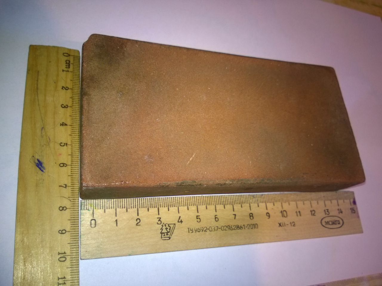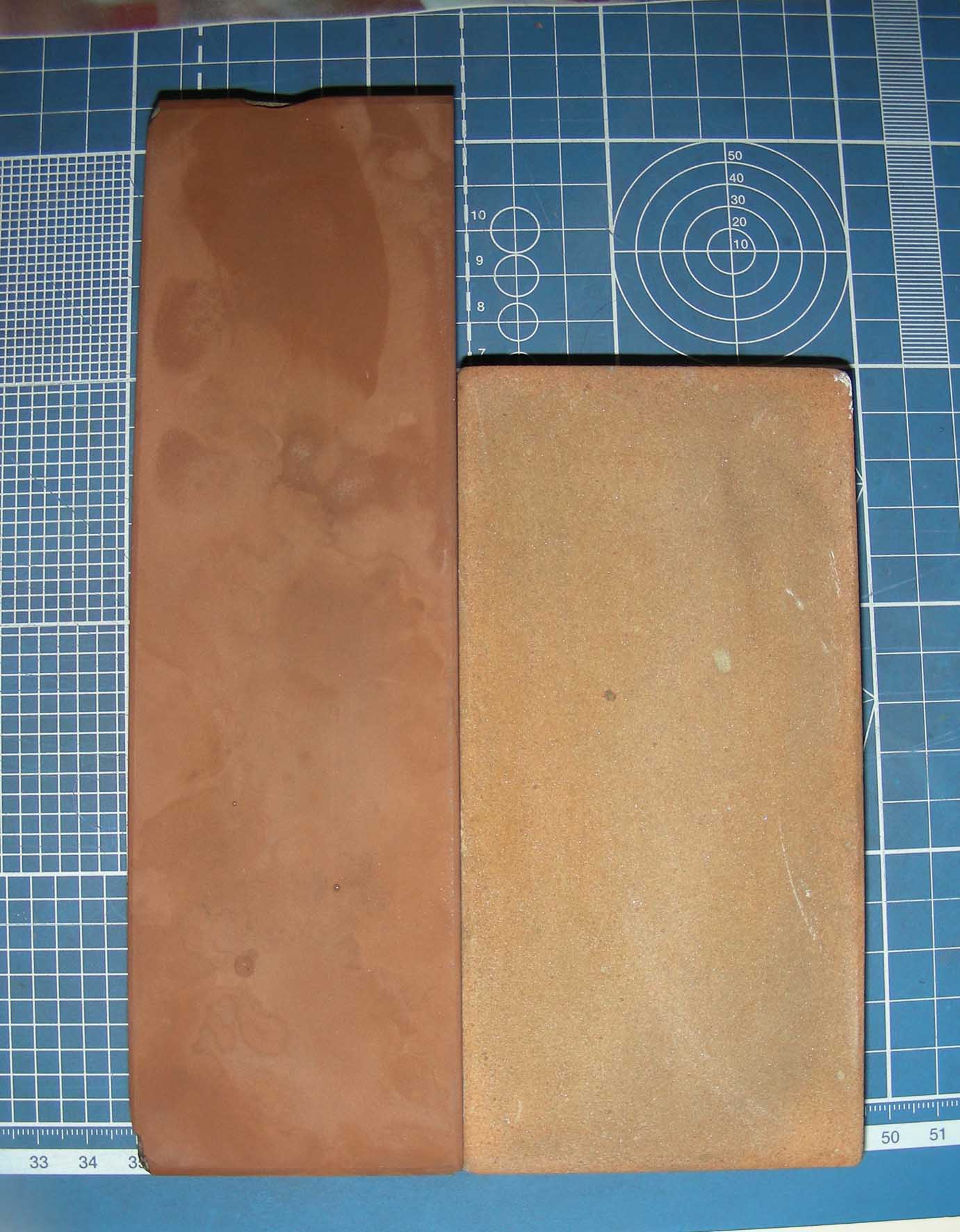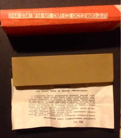 RuslanK Твой камень очень похож на совецкий микрокорунд, были такие рыжые "кирпичи" с очень условным размером зерна! Попробуй поработать на нем с мыльным раствором, так и в инструкции пишется... Фото для примера!