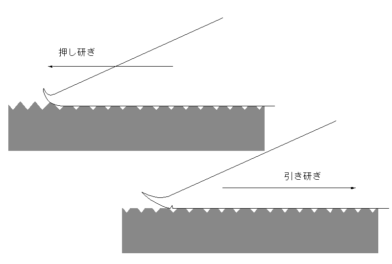 Re: Давление на камень при заточкеК большому сожалению, лично с ним не знаком. И переписки с ним не веду. ЕМНИП, где-то он упоминал об удалении заусенца при каждой смене зерна... "Основная причина возникновения заусенца это усилие нажима. Обнаружить заусенец можно на ощупь, оптикой и ватой, которая на нем оставляет волокна. Величина зависит от зерна, усилия нажима и направления рисок. Простой способ борьбы - с легким нажимом делать резы по торцу любого твердого дерева." © Дмитрич Кстати, японцы при заточке практикуют и "обратный ход", когда клинок движется попеременно на зерно и от зерна, но на обратном ходу усилие прижима намного меньше. Зачем? Вот: Я говорил о полировке несведённых граней. (Попадалась отличная иллюстрация на эту тему - двойной заусенец. (В два ряда, как зубья на пиле по дереву - будь они хоть бритвенно острые - попробуйте ножовкой строгать.) Как только заусенец сбит/загнут - остаётся угол заточки 180° (Ну или два по 90+°, если хотите.) Цинизм - это способ спокойно принимать жизнь такой, какая она есть.