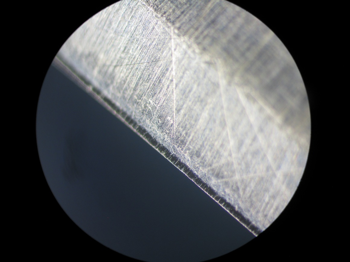 Хороший же микроскоп с координатным столиком и микрометрическими винтами позволяет"протянуть" в поле зрения всю РК в хорошем увеличении и разрешении, и увидеть все косяки; сколы, замины, линзу, облой, микротрещины, "кружево" и др. без напряжения на удержание кромки в пределах поля зрения, фокуса и тремора рук. ИМТО (Имею Мнение Трубка Оспоришь) 32 года активно мусолю харю клинковой бритвой