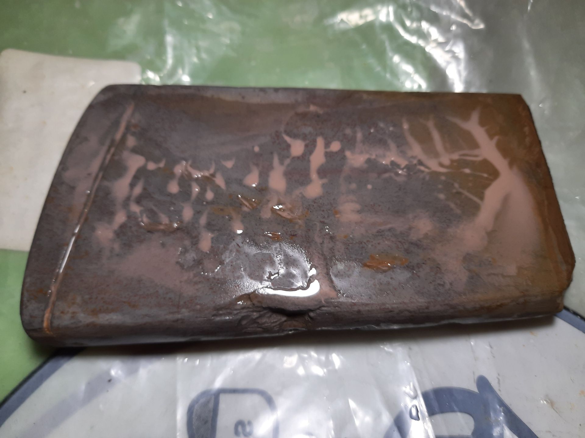 Заточка на камняхСегодня на заводе, кладовщица шарилась на складе. Нашла байкалитик 125х25. Говорит, что последний. Правда, крупные я ещё несколько лет назад забрал. Не притёртый. Кусочек СССР.