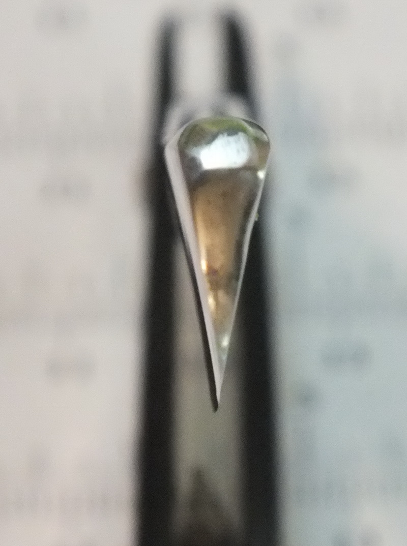 Вывел клин в ноль. Поскольку бритва немного изогнута влево, получилось неэстетично. Весьма.