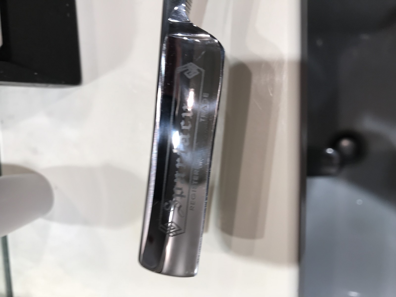 Собрались специалисты... Где тут обратная? На обух посмотрите - там горб был, соо-но на кромке снято больше сцентра, а сама рк прямая. Что тут криманального из фото не понятно. Бритва тянет на новодел, там обычно само полотно не айс.