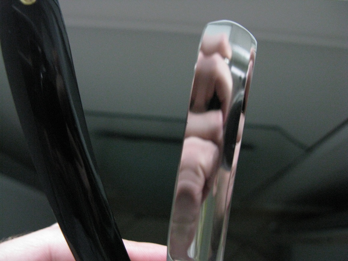 , на второй день пробы камня смог легко добиться зеркальной кромки! Заточил бритву до 3000 синтетики и перешел на Асаги с томо нагура (собственная), очень...очень быстро заточил до бритья, после смыл суспензию и на чистом камне быстро довел до неплохого зеркала...кажется я во сне Такое кажется невероятным, ведь с синтетиками пришлось бы переходить ещё на 4-5 камней и точить во много раз дольше. Именно из за таких вот невероятных описаний, как это моё, я и не верил в тему японских натуралов - слишком уже сказочно рассказывают, создается впечатление, что такие описания обусловлены ценой камня и тяготением к японской культуре, а не свойствами камней.