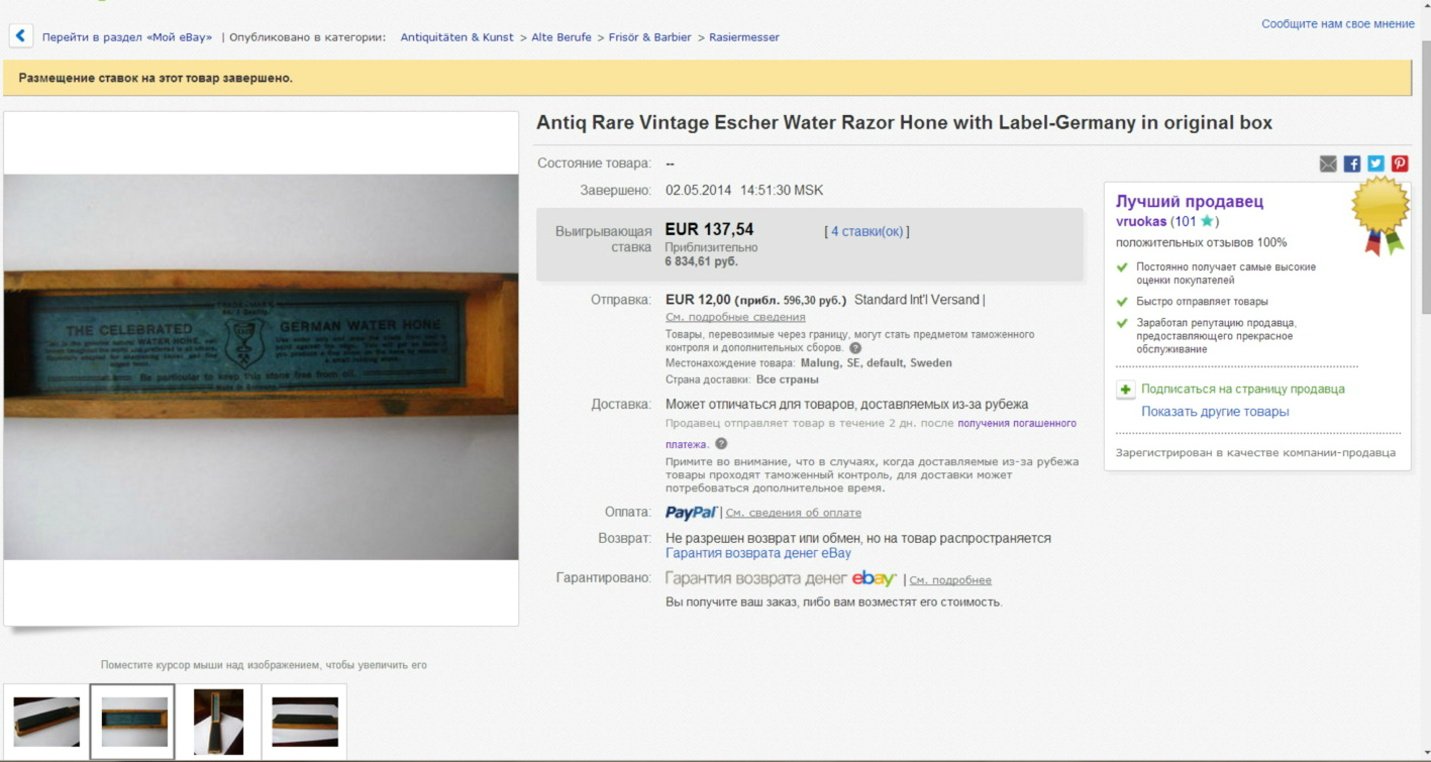 я вообще-то полностью с тобой солидарен  и подкрепил примером ещё меньшей цены. Цена будет до 100евро. Может кому из наших понадобится второй аукцион.