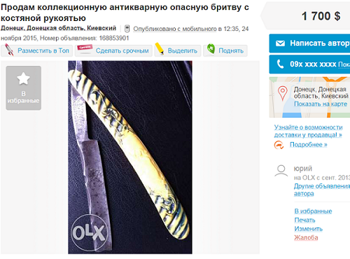 Re: Аукционы: плагиат, развод и "великолепные" описанияИнтересно, а что за бритва? На самоделку очень похожа, может действительно у цыган Ростовской области был подпольный цех по производству бритв-ножей?