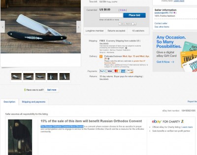 Аукционы: плагиат, развод и "великолепные" описанияДля тех кто хочет поддержать Ново-Дивеевский женский православный монастырь и меня а так же купить красивую но бесполезную бритву, есть следующий лот на ебее.