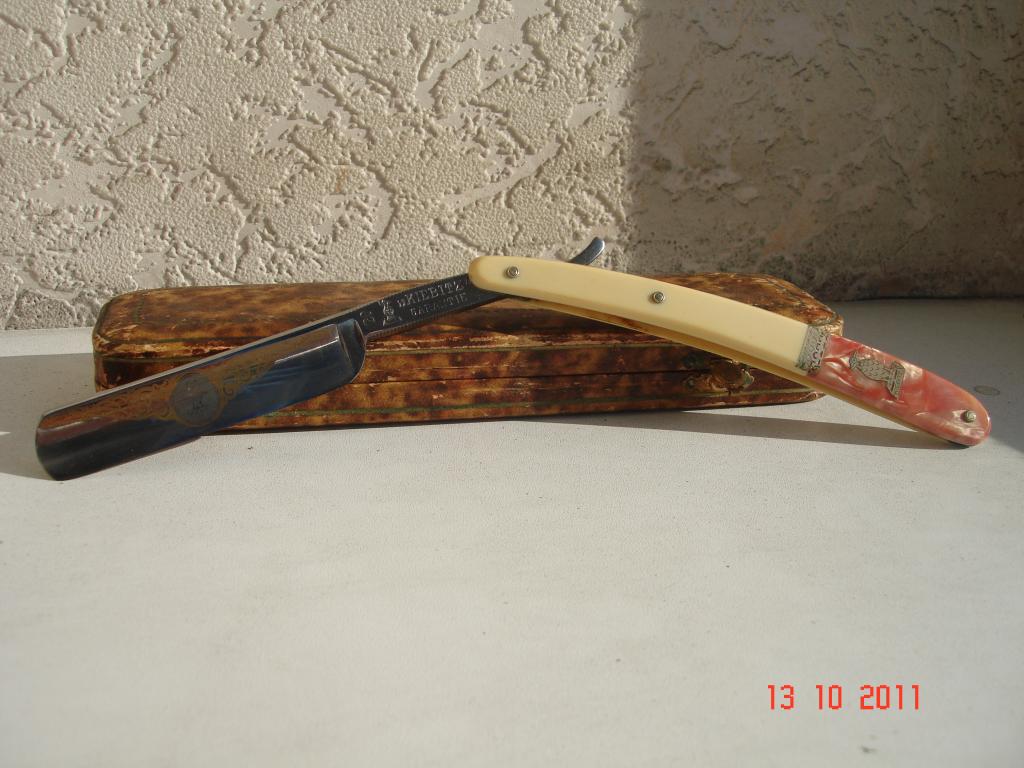 Сохранность опасной бритвы хорошая, сохранность футляра - хорошая. Торг уместен.
