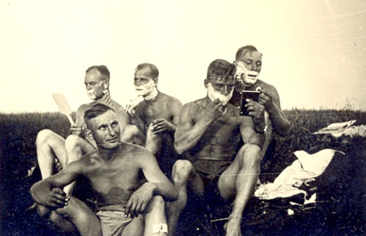 Re: Опасная бритва в искусстве ( картины, рисунки, фото, татDie deutschen Soldaten rasieren sich 2 - Немецкие солдаты бреются 2