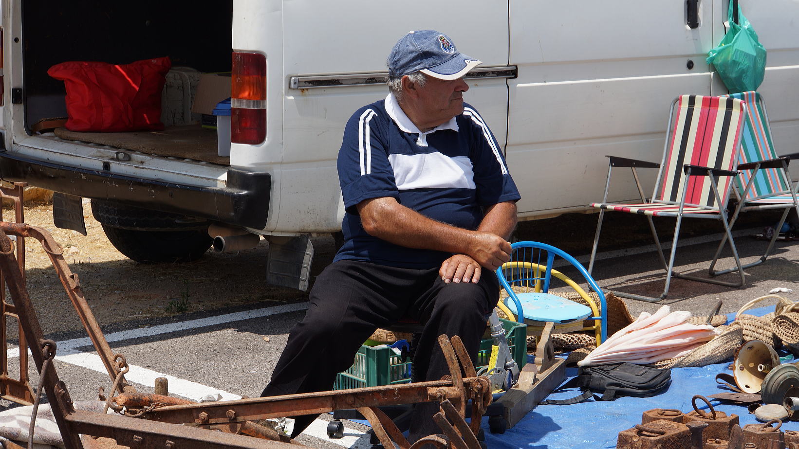 Июль 2013-го года. Наконец-то докопал фото. Ничего особенно дельного. Две уделанных в хлам бритвы у меня в кармане (англичанка и P.Ford и Filarmonica, плюс алюмокалиевые квасцы, в виде, мелка португальского производства), зато сала и всякой ненужной утвари - масса! Сало купил на пробу - не хуже мелитопольского. Португальцы - черноволосые, добрые, бесхитростные хохлы. Точнее очень на них похожи, по характеру. Может поэтому украинцы и подтянулись сюда многочисленной толпой на ПМЖ. Рынок похож на наш. Хохлов (уже реальных) - тьма. Русский говор и там и тут. На контакт идут неохотно, считают себя людьми первого сорта, европейцами, а все приехавшие - быдло. Прошу учесть - Москва в 5000 км отсюда! Купил 2 ничего не стоящих бритвы за 15 Евро, вкусные фрукты за копейки и поехал домой. Рынок кочующий по городкам в 15 минутах от Албуфейры. Поймать его непросто, надо допрашивать местное население. Нравится мне тут. Тишь да гладь. Пришёл в городок, деньги снять, - у всех банкоматов хохлы, от жеж ёпрст... Красота...