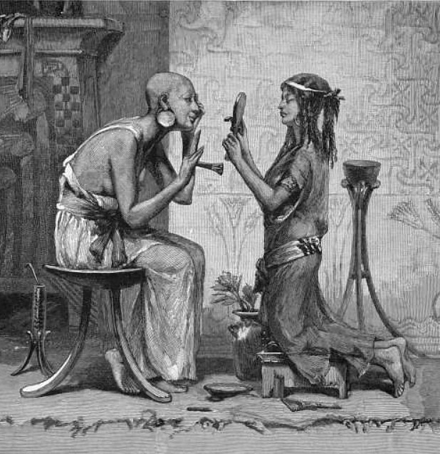 „An Egyptian lady preparing to go into Mourning for the death of her pet Cat” „Египетская дама готовится погрузиться в траур по поводу смерти своей кошки” (Сбривает брови) Взглянем поближе: Конечно, у египтян были другие бритвы: viewtopic.php?p=232641#p232641 С 2013 г. с кайфом бреюсь опасной бритвой пять раз в неделю, в три прохода.