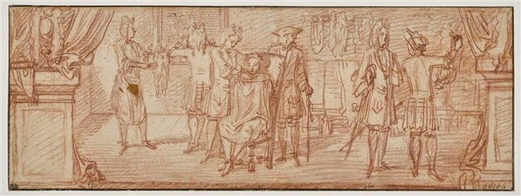 „Une boutique de barbier”, „Цирюльня”, около 1709 г.! Цирюльник: С 2013 г. с кайфом бреюсь опасной бритвой пять раз в неделю, в три прохода.