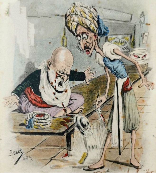 „Scеnes Algеriennes - Le Barbier Maure” „Алжирские сцены - мавританский цирюльник” Порезал, немного С 2013 г. с кайфом бреюсь опасной бритвой пять раз в неделю, в три прохода.